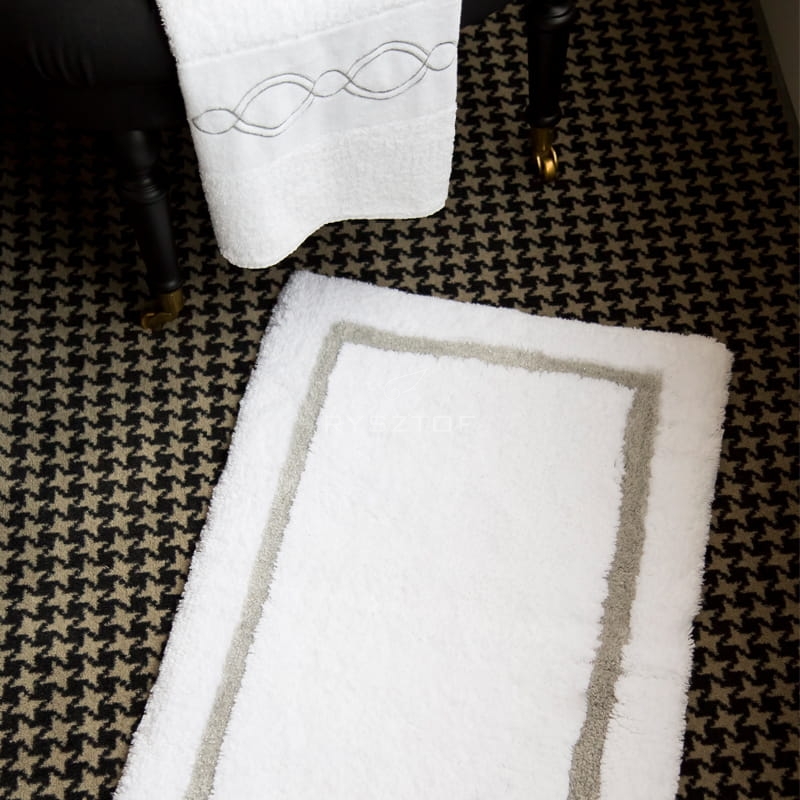 Dywan ze złotą nitką dobrze będzie komponował się z ręcznikami w kolorze 100 oraz 840, natomiast dywan ze srebrną nitką warto połączyć z ręcznikami w kolorach 100 oraz 992 lub modelem Lara.